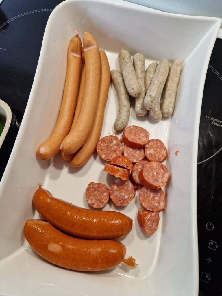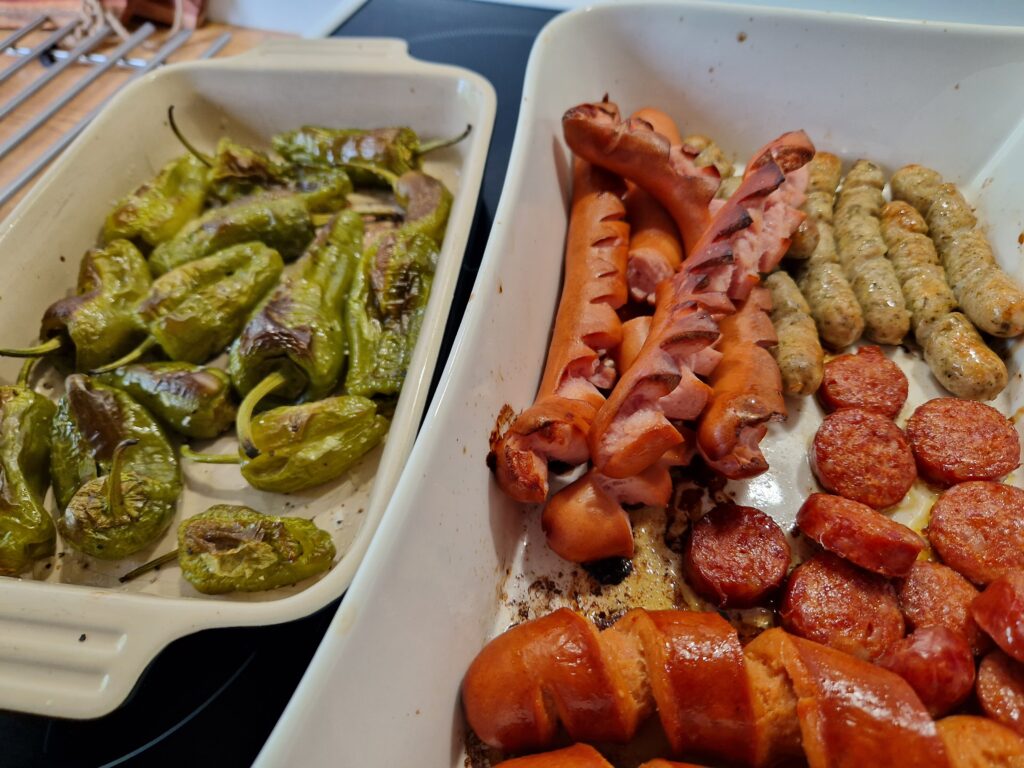 Aloitetaan makkarabaarista. Meillä kaikilla on oma makumme minkätyyppisestä makkarasta tykkäänne, joten en lähde tekemään valintoja kenenkään puolesta. Nykyään ruokakaupoista löytyy erittäin suuri valikoima mausteisia, mietoja, juustoisia, lihaisia, kasvismakkaroita jne. Eli, valitse kaupasta 3-4 eri laatua olevaa makkaraa joista itse pidät, ota huomioon kypsennysaika jos ostat raakamakkaraa, että et pukkaa kaikkia eväitä yhtäaikaa paistumaan uuniin tai grilliin. Itse asun kerrostalossa joten ’grillinä’ tulee toimimaan enemmän ja vähemmän keittiömme kiertoilmauuni.