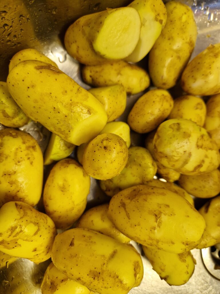 Perunoita ei voi pakastaa raakana, eikä myöskään kypsinä, vaan jotain siltä väliltä. Valitse pakastettaviksi perunoiksi kiinteää lajiketta ja mielellään tasakokoisia (pieniä) yksilöitä. Itse olen tainnut vuosien varrella pakastaa niin annabelleä kuin siikliä ja tänä vuonna taisin ostaa timo-lajiketta.